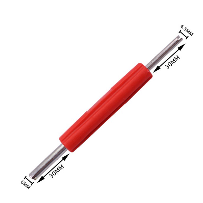Dụng cụ tháo lõi van, nhựa màu đỏ, kim loại màu vàng (kích thước như hình)