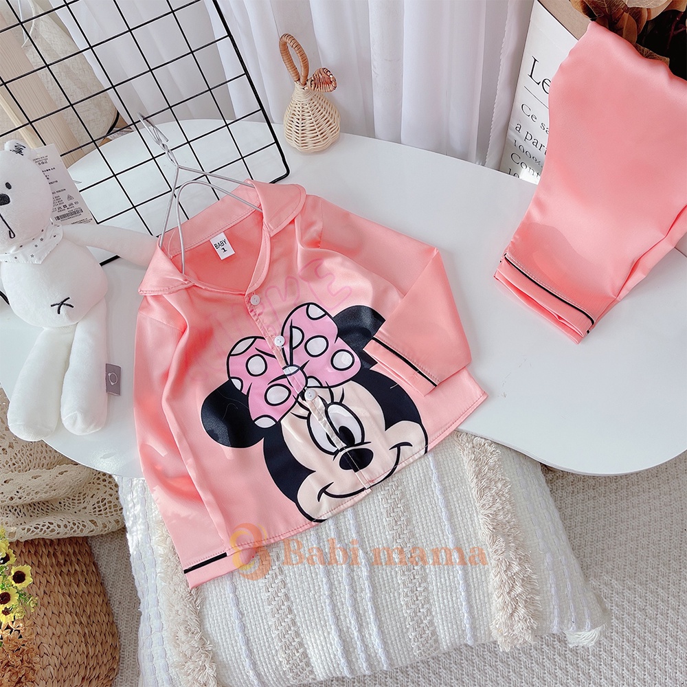 Thời trang trẻ em & trẻ sơ sinh > Quần áo bé gái > Đồ ngủ || Bộ Lụa Dài Tay Cho Bé Gái Chất Lụa Satin In 3D Size 8-38kg Đồ Bộ Mặc Nhà Babi mama - BPN12