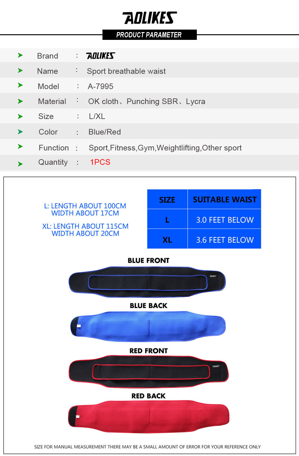 Đai Lưng Tập Gym AOLIKES 7995 - Hỗ Trợ Cột Sống, Bảo Vệ Thắt Lưng Khi Nâng Tạ, Tập Luyện Thể Thao