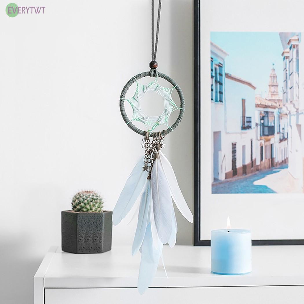 *Type: Feather pendant decoration *Material: Wooden Beads + Iron Ring + Feathers *Occasions: Living Room, Bedroom, Dining Room, Cafe, Shop, etc *Features: Hand Weaving, Fine Workmanship, Gift, Hanging Pendant *Total Length: 38cm/14.96" (Approx.)
