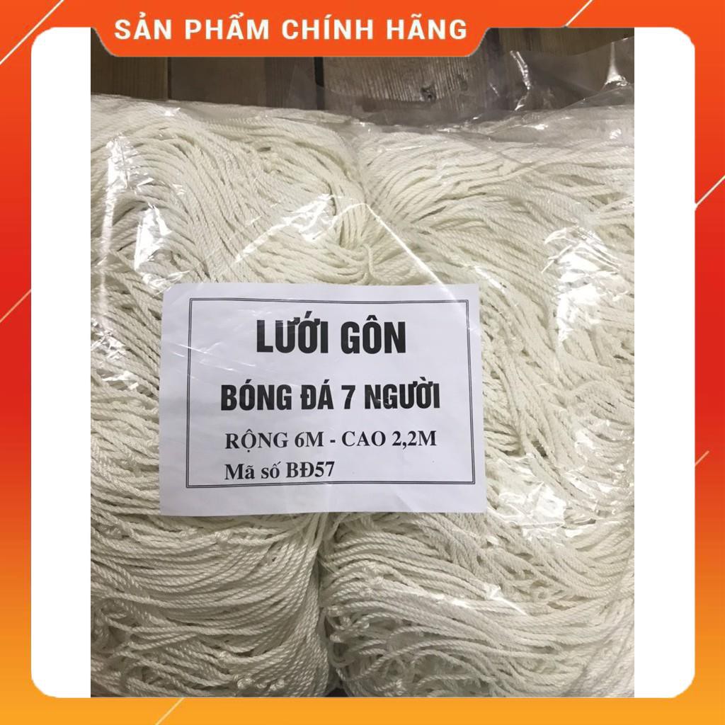 Lưới gôn bóng đá 7 người, chất liệu dù siêu bền đẹp, chất Được làm sợi dù chắc chắn các mắt lưới được đan đều đẹp chịu được thời tiết mưa nắng Viền lưới đan chắc chắn Bất chấp mọi thời tiết khắc nghiệt Rộng 6 M, cao 2,2 M