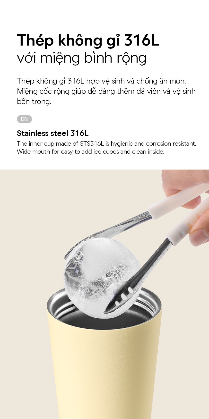 - Miệng cốc rộng giúp dễ dàng thêm đá viên và vệ sinh bên trong