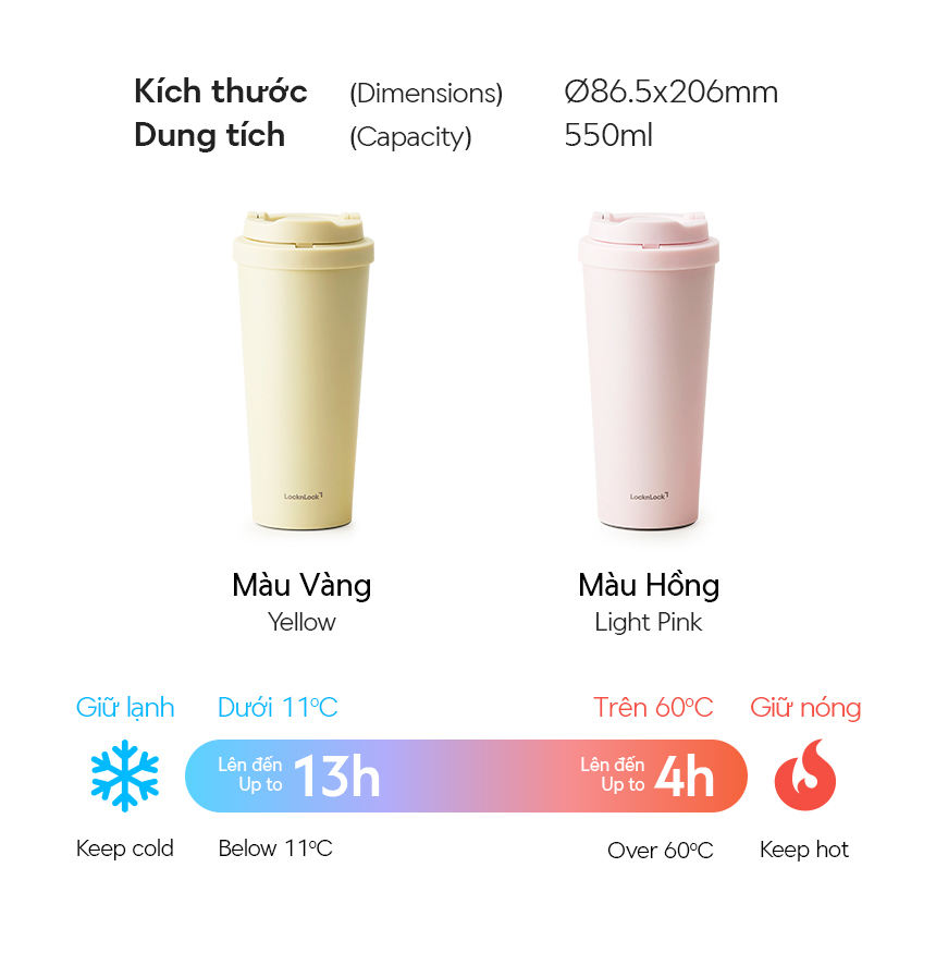 Ly Giữ Nhiệt LocknLock Energetic Tumbler 550ml LHC3249YELS01 LHC3249LPIKS01, Hàng Chính Hãng-JoyMall