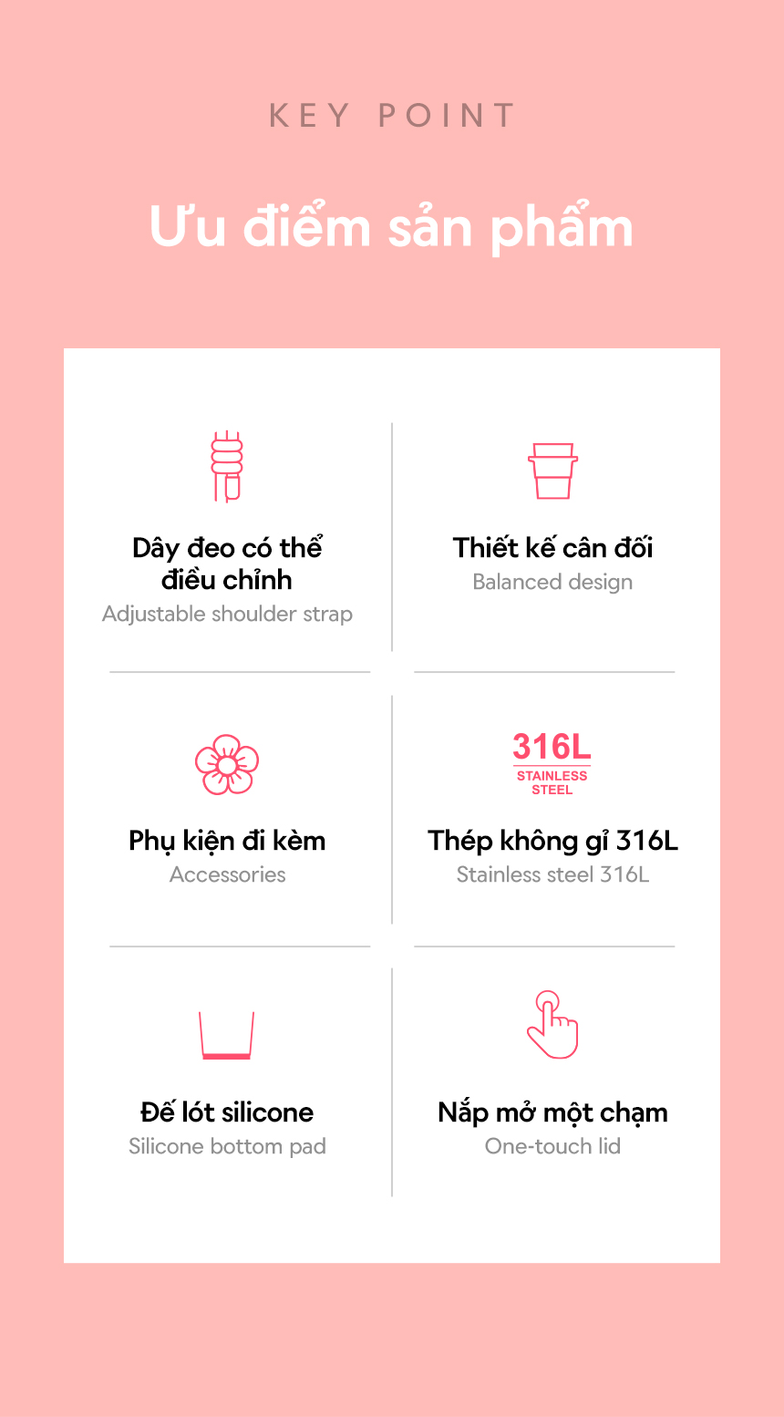 - KHẢ NĂNG GIỮ NHIỆT TỐT: Giữ nóng đến 4 tiếng và giữ lạnh đến 13 tiếng