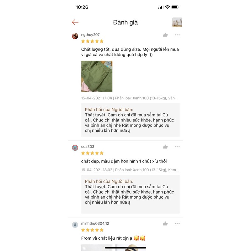 1. THÔNG TIN SẢN PHẨM: - Size:80, 90, 100, 110, 120, 130 - Chất vải thô còn được ưa chuộng bởi độ bền dài lâu, không bị xù lông, an toàn và không gây ngứa ngáy và đặc biệt là chất mát rất phù hợp cho bé mặc mùa hè. - Toàn bộ sản phẩm đều là ảnh chụp thật. - Cam kết hoàn tiền nếu hàng không giống hình. ------------------------------------------------------------------ 2. CHỌN SIZE THEO CÂN NẶNG HOẶC CHIẾU CAO CỦA BÉ: Các mẹ tham khảo ở phần phân loại sản phẩm. NẾU PHÂN VÂN HÃY INBOX HOẶC GỌI CHO SHOP NHÉ! ------------------------------------------------------------------ 3. CÁCH THỨC ĐẶT HÀNG: Toàn bộ sản phẩm đều là hàng có sẵn các mẹ chỉ việc phân loại hàng mong muốn theo cân nặng hoặc chiều cao của bé - chọn mẫu, số lượng rồi cho vào giỏ hàng. - Nếu muốn mua nhiều sản phẩm khác nhau thì các mẹ cho từng sản phẩm vào giỏ hàng rồi back lại trang chủ shop để ấn chọn sản phẩm tiếp theo. - Sau khi chọn xong các mẹ chọn giỏ hàng phía trên cùng bên phải màn hình để soát lại đơn và tiến hành đặt hàng. - CÁC MẸ NHỚ LƯU VOUCHER CỦA SHOP ĐỂ MUA ĐƯỢC GIÁ TỐT NHẤT. - Nếu mẹ nhận hàng thấy hài lòng vui lòng đánh giá cho shop 5 sao kèm nhiều hình ảnh để nhận được xu (quy ra thành tiền khấu trừ) cho các đơn hàng tiếp theo. ------------------------------------------------------------------ 4. HƯỚNG DẪN BẢO QUẢN VÀ SỬ DỤNG - Giặt riêng sản phẩm với lần giặt đầu tiên. - Không sử dụng bột giặt có chất tẩy nồng độ cao. - Khi phơi các bạn nên lộn áo ngược lại để màu của sản phẩm được bền lâu. ------------------------------------------------------------------ 5. CHÍNH SÁCH ĐỔI TRẢ: - Đổi trả trong vòng 3 ngày sau khi nhận hàng. - Sản phẩm đổi trả phải còn nguyên tem, nhãn, bao bì, chưa qua sử dụng giặt tẩy. Nguyên vẹn như ban đầu Shop giao. - Mọi vấn đề về hàng hóa vui lòng liên hệ hotline: 0869242268 hoặc inbox để được giải quyết.