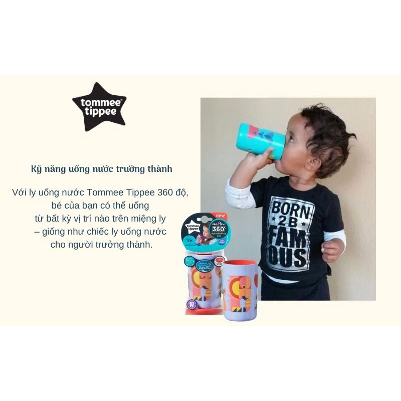 Ly uống nước chống đổ dành cho bé. Ly uống nước Tommee Tippee 360o sử dụng như bất kỳ một chiếc ly uống nước bình thường nhưng có khả năng chống đổ. Được thử nghiệm so sánh với tất cả các ly uống nước bán chạy nhất trên toàn cầu, đây là chiếc ly 360o dễ dàng nhất cho bé uống cũng như cho bố mẹ vệ sinh.