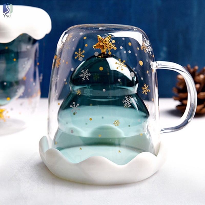 Delicate Coffee Cup:Say goodbye to boring life from this unique 3D Christmas tree design glass coffee mug. A big star on the treetop, white and gold snowflake flying on the cup makes it shine in the bright light. It surely makes a great talking point at parties!