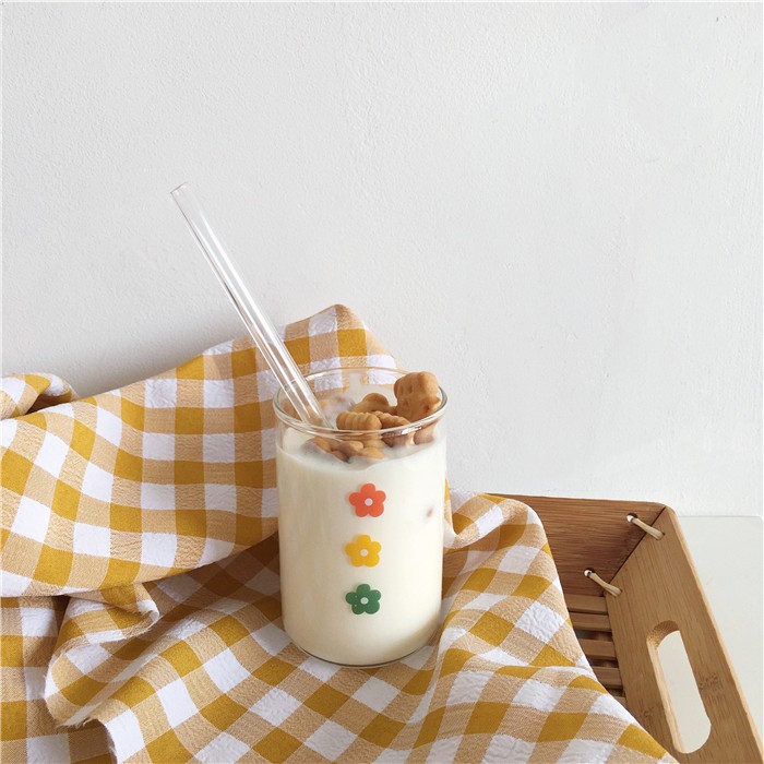 Ly Thủy Tinh Trong Suốt Chịu Nhiệt Kèm Ống Hút Phong Cách Hàn Quốc