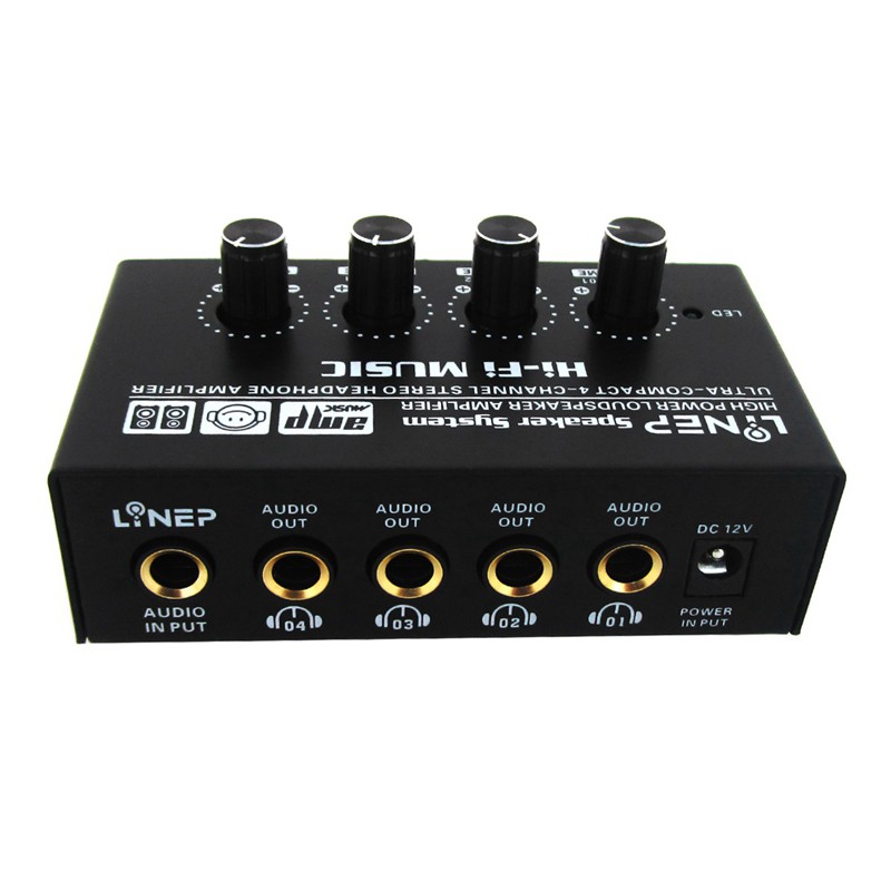 The servo voltage stabilizing circuit and one-channel signal input are well-designed. The Four-channel independent amplifying signal output and two-channel The interface panel reserves interface in 6.5mm and 3.5mm to 6.5mm gold-plated converter,allowing for the input/output of and loudspeaker box interface.The four-channel is enabled with Volume Gain knob of independent. 4-channel Stereo Earphone/Sound Amplifier for All Types of Impedance Earphones, The 4 big-power stereo amplifier can maintain the best sound quality without distortion even in big volume.All channels are enabled input level function. Ultra low noise imported chip amplifier can make for better tone. Max.Signal input voltage:450mV SNR:120dB(A) Output power:140mW Distortion:0.02% Channel separation:120dB Frequency response:20Hz-20kHz(±0.05dB) Output noise:Less than 0.1mw Output load impedance:16-320 ohm Output impedance:100kohm Input Type:LINE IN (AUDIO IN) Output Type:LINE OUT (AUDIO OUT) Built-in Battery:No Recommended Headphone Maximum Impedance:65-80 Ohm Type:Mini Amplifier Model Number:A908 Package:yes Channels:3 (2.1) DAC Model:5532 Operational Amplifier Chips Model:5532 DSD (Direct Stream Digital):No PCM:Yes Bluetooth:?No WIFI:No Brand:LYNEPAUAIO Plug Type:US Plug,it applies to Canada,India,Japan,Mexico,Thailand,the United States,the Philippines and so on. Colour:Black material:metal Package Contents: 1* headphone splitter 1* 3.5 to 3.5 audio cable 5* 3.5mm to 6.5mm audio converter 1* US standard power adapterOnly the above package content, other products are not included. Note: Light shooting and different displays may cause the color of the item in the picture a little different from the real thing. The measurement allowed error is +/- 1-3cm.