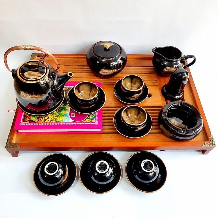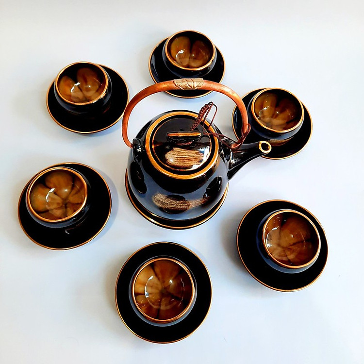 - Shop chúng tôi trân trọng giới thiệu một số mẫu Bộ ấm chén Bát Tràng cao cấp “hoa trong lòng gốm” men hoả biến hổ phách viền vàng 24k