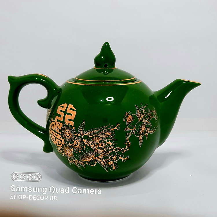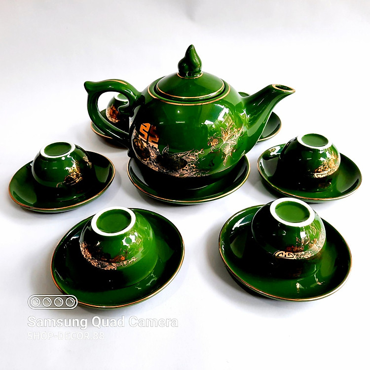 Bộ ấm chén bưởi rêu đào thọ vẽ vàng 24k là sản phẩm hội tụ được nét tinh xảo của bàn tay Nghệ nhân Bát Tràng. Bên ngoài được tráng một lớp men xanh ngọc độc đáo kết hợp với các họa tiết viền vàng kim 24k đảm bảo sự sang trọng quý phái