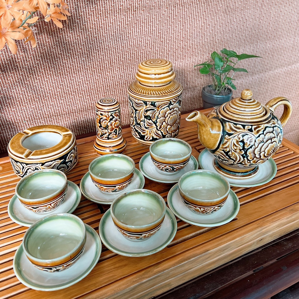 - Bộ ấm chén uống trà từ Mỹ Nghệ Việt sẽ góp phần mang đến cho bạn những buổi thư giãn thoải mái cùng gia đình bên những tách trà nóng đậm đà và thơm ngon, cũng như trả lại cho tâm hồn sự bình yên trong cuộc sống. - Cấu tạo bộ ấm chén sứ cao cấp: đảm bảo độ thẩm thấu cao, lưu giữ hương hơm của trà - Sản phẩm được đốt trong lò với nhiệt độ 1300 độ C, khử hoàn toàn các chất độc hại đảm bảo sức khỏe cho người sử dụng. - Sản phẩm đẹp, đẳng cấp có thể dùng làm quà tặng người thân, bạn bè, tân gia. - Chén được tráng men xanh ngọc trong lòng, màu sắc tươi sáng, sạch bong và giúp giữ được hương vị cũng như vị trà thơm ngon và đẹp mắt ,không bị bám trà, dễ dàng vệ sinh lau rửa sau khi sử dụng.