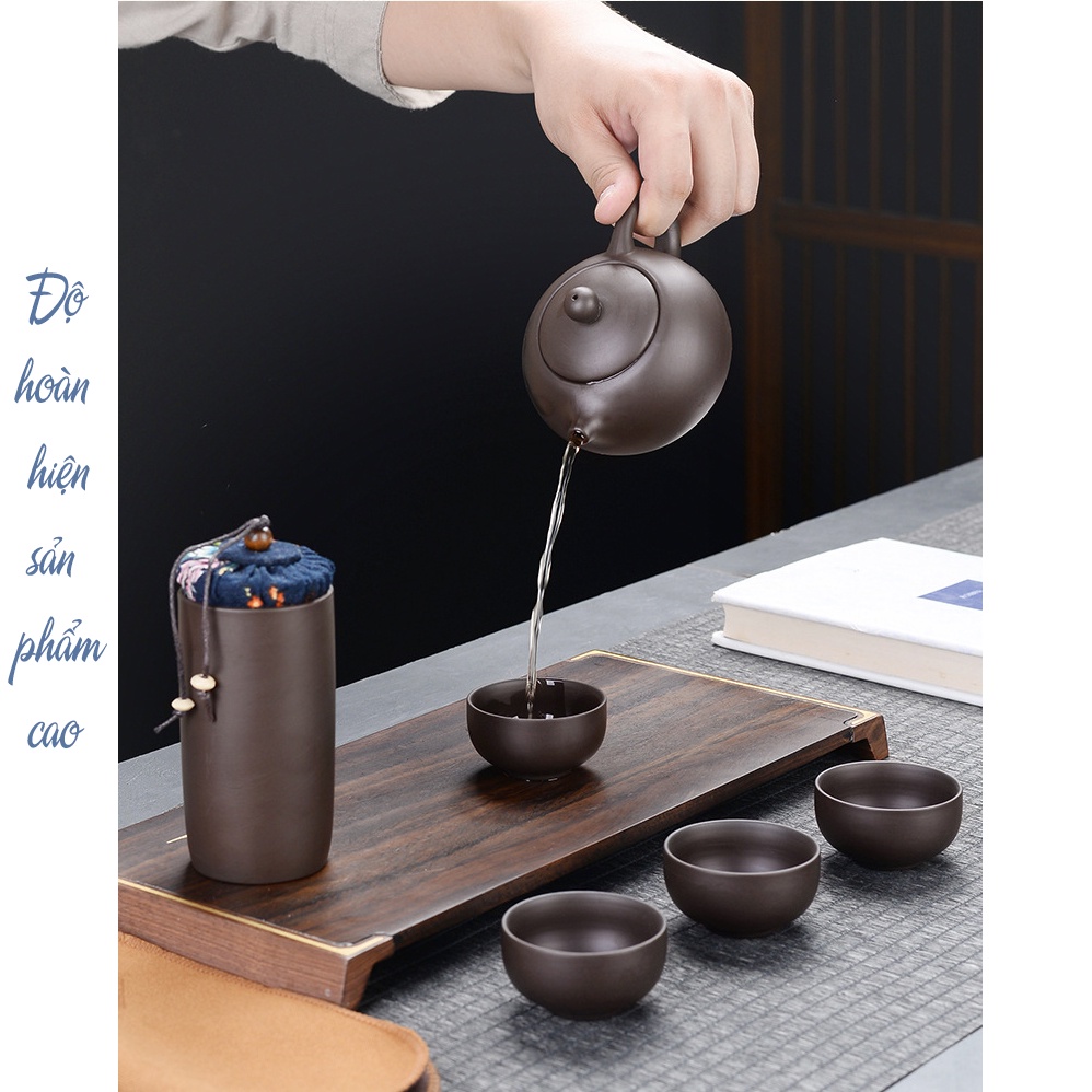 Giới thiệu Bộ ấm chén uống trà Tử Sa cao cấp 4 chén dùng đi du lịch, dã ngoại ngoài trời