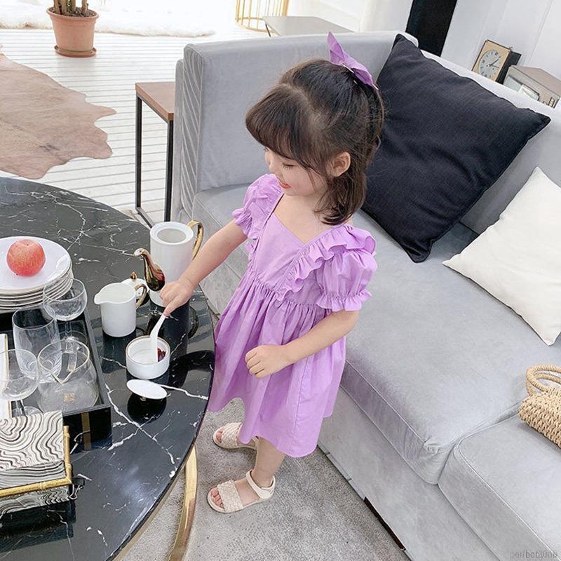 Tính năng sản phẩm: Chiều dài đầm: Dài đến đầu gối Chất liệu: Cotton Phong cách: Dễ thương Trang trí: Xếp nếp Kiểu dáng: Chữ A Chiều dài tay áo (cm): Ngắn Loại họa tiết: Trơn Phong cách tay áo: Tay áo phồng Áo ngực tích hợp: Không Kiểu cổ áo: Cổ áo vuông Độ tuổi phù hợp: 2-8 tuổi Phù hợp: Vừa với kích thước thực tế, lấy kích thước bình thường của con bạn
