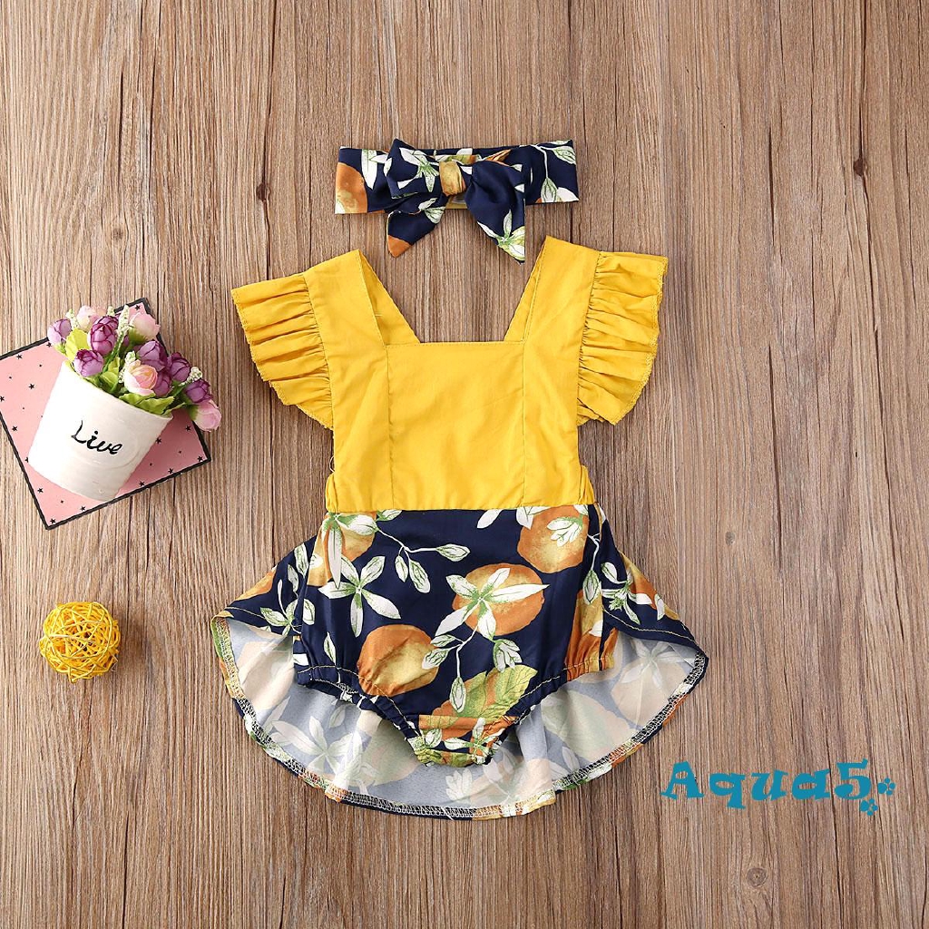 Giới thiệu Bộ Đầm In Hình Quả Chanh+Băng Đô Cho Bé Gái