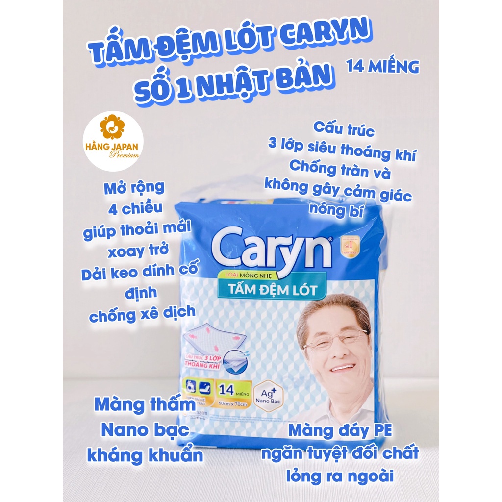 Tấm đệm lót Caryn siêu thấm 14 miếng bảo vệ chống tràn cho mẹ, bé và người lớn tuổi