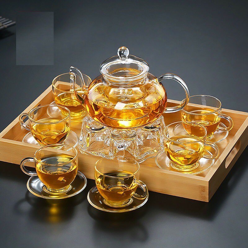 Bộ ấm trà thuỷ tinh - SET 3 sở hữu chất liệu thủy tinh chịu nhiệt Borosilicat trong suốt và đẹp mắt. Sản phẩm được sản xuất trên dây chuyền & công nghệ hiện đại cho phép đạt chất lượng hoàn hảo, đã chinh phục thành công thị trường nội địa Trung Quốc. Chất liệu thuỷ tinh chịu nhiệt, chịu được nhiệt độ lên đến hơn 100 độ C. *Xuất xứ: Hàng nội địa Trung Quốc được nhập khẩu về Việt Nam. *Mỗi set trà thuỷ tinh full gồm các bộ phận: - 01 ấm trà vòng 600ml. - 01 đế nến. - 06 tách chịu nhiệt có quai - 120ml. - 06 đĩa chịu nhiệt.