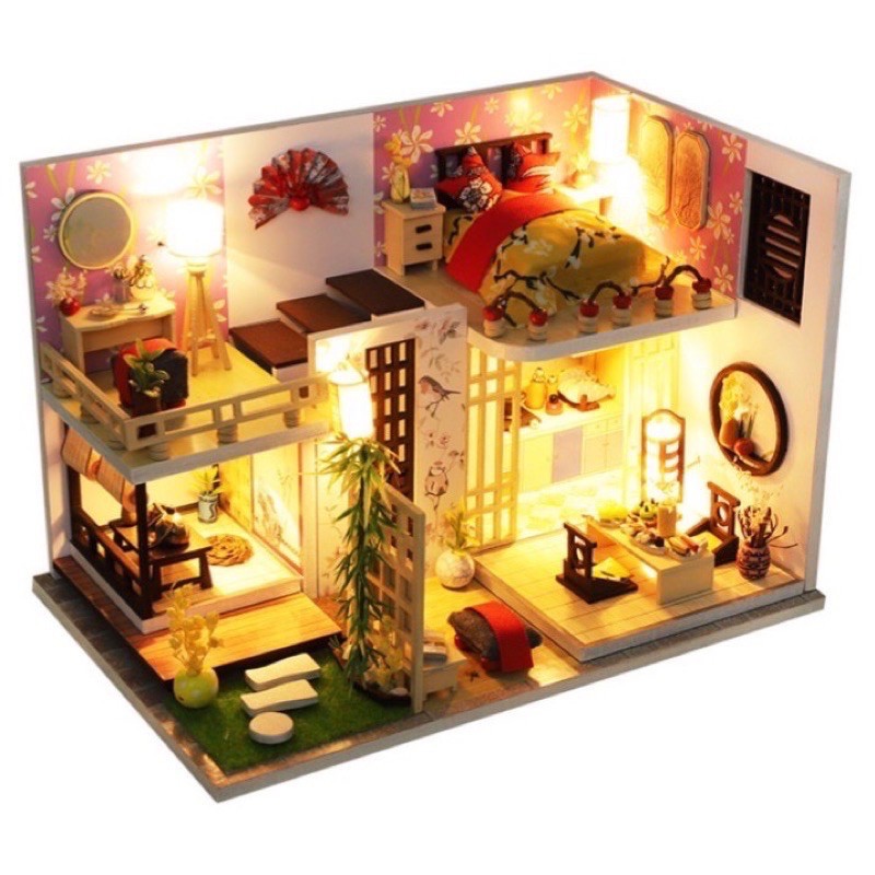 Giới thiệu (Tặng mica,keo sữa,đèn)Mô hình đô chơi nhà búp bê bé tự lắp ráp bằng gỗ Diy doll house M027