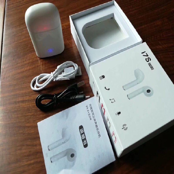 Tai nghe Bluetooth không dây i7s-Tws loại 2 tai nghe kèm hộp sạc âm thanh cực hay cực sống động, đem lại cảm giác nghe nhạc thật chân thực. - Nhỏ gọn, dễ sử dụng và tương thích với đa số các dòng điện thoại có kết nối Bluetooth hiện nay và đặc biệt với 1 mức giá khá phải chăng đây chắc chắn là một lựa chọn đáng quan tâm dành cho bạn. - Chiếc tai nghe này chỉ có một phím nguồn khá đơn giản trên tai nghe dùng để bật tắt. Chính thiết kế đơn giản này sản phẩm thực sự chiếm được cảm tình của người dùng . - Được làm bằng nhựa cứng với bề mặt phủ bóng, phân chân sạc tròn bé giấu kín khá tinh tế. ----- ƯU ĐIỂM CỦA SẢN PHẨM----- --- Có chức năng chuyển bài hát --- Nghe nhạc qua Bluetooth được. --- Nhận được cuộc gọi đến và đi. --- Sử dụng công nghệ Bluetooth V4.1+ EDR mới nhất --- Dung lượng pin 60mAh, thời gian sạc 1-2h --- Kèm hộp sạc: cho dung lượng và thời gian sử dụng thêm 4h nữa. --- Nguồn sạc : DC 5V --- Bluetooth Support: A2DP1.3/HFP1.6/HSP1.2/AVRCP1.6/D11.3 --- Cường độ âm thanh: -42Db --- Khoảng cách kết nối tối đa lên đến 10m.