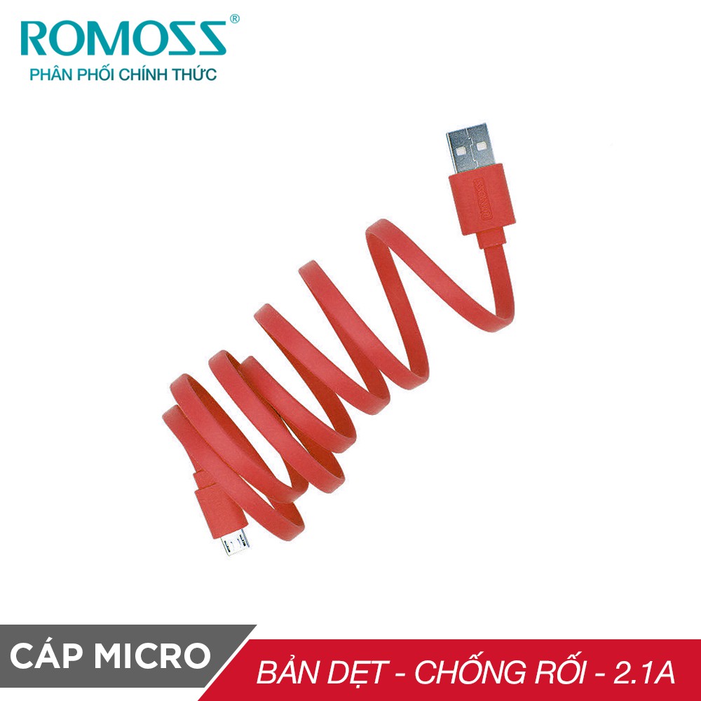☼ Bảo hành: 12 tháng ☼ Sản phẩm chính hãng Romoss ☼ Thiết kế bản dẹt chống bị rối ☼ Sử dụng dễ dàng với thiết kế dài 1m ☼ Sạc nhanh với cổng USB 2.1A ☼ Hỗ trợ sạc nhanh và đồng bộ hóa dữ liệu ☼ Tương thích hầu hết các thiết bị hỗ trợ cổng sạc micro USB ☼ Với 5 màu cá tính - bạn có thể lựa chọn dễ dàng ===========================