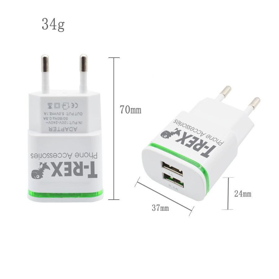 Giới thiệu [Mã 2404EL10K giảm 10K đơn 20K] Củ Sạc Đèn LED T-Rex 2.0 (2Đầu USB) Dùng Cho Điện Thoại Samsung/ Iphone/ Android