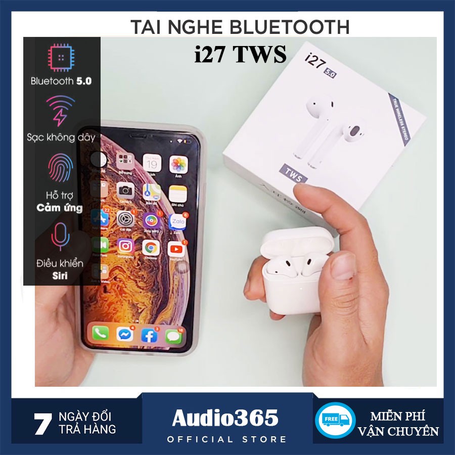Video review sản phẩm tai nghe bluetooth i27 TWS: https://www.youtube.com/watch?v=dFcYOTPeTM8 LƯU Ý: TRÊN THỊ THƯỜNG HIỆN CÓ NHIỀU MẪU TAI NGHE I27 TWS CHẤT LƯỢNG KÉM, QUÝ KHÁCH NÊN XEM VIDEO REVIEW VÀ TÌM HIỂU KỸ TRƯỚC KHI MUA HÀNG ĐỂ TRÁNH MUA PHẢI HÀNG KÉM CHẤT LƯỢNG -------------------------------------------------------- AUDIO365 CHUYÊN PHÂN PHỐI PHỤ KIỆN CÔNG NGHỆ CHÍNH HÃNG VỚI CHẤT LƯỢNG ĐẢM BẢO VÀ CHẾ ĐỘ BẢO HÀNH ĐÚNG CAM KẾT. Mua hàng tại AUDIO365 các bạn sẽ nhận được những ưu đãi: ✅Freeship cho đơn hàng trên 150K (tại HN), trên 250K ở các tỉnh thành khác. ✅Đước hỗ trợ đổi sản phẩm nếu không ưng ý ✅Bảo hành đúng cam kết 100%. ✅Hotline/zalo hỗ trợ: 097.691.3377 - 096.102.1221 ✅Website: http://www.tainghetws.com/ ✅FanpageFB: https://www.facebook.com/taingheblutoothtws/?modal=admin_todo_tour -------------------------------------------------------- TAI NGHE BLUETOOTH TWS I27 PRO BẢN MÀU ĐEN - BẢN CÓ CẢM BIẾN THÁO TAI NGHE KHỎI TAI SẼ NGỪNG NHẠC, ĐEO LẠI SẼ PHÁT NHẠC --------------------------------------------- Tai nghe i27 TWS PRO chính hãng, lỗi 1 đổi 1 trong 7 ngày, bảo hành 12 tháng Kết nối: Bluetooth 5.0, tự động hiện Pop-Up menu trên iOS Pin: Dock 350mAh - Tai nghe 35mAh Thời gian sạc: 1h - 1h30 Thời gian dùng: 2h30 - 3h với 2 tai, Dock sạc thêm được ~4 lần Tính năng khác: Sạc không dây, điều khiển cảm ứng, mic đàm thoại --------------------------------------------- Hướng dẫn kết nối: * Bước 1 : Mở bluetooth trên điện thoại * Bước 2 : Mở hộp tai nghe * Bước 3 : Đợi 1,2s cửa sổ ( pop up ) hiện lên và chọn kết nối. ( hoặc bạn ấn nút nguồn để bật tai nghe ) -------------------------------------------- Tính năng của tai nghe Tai nghe không có đèn trên tai nghe như các dòng i12, i11.. Chạm 2 lần đê play pause Cham 3 lần để chuyển bài -------------------------------------------- Bộ sản phẩm đầy đủ bảo gồm : - 02 tai nghe trai và phải - 01 hộp sạc - 01 dây nguồn - 01 Hướng dẫn sử dụng #i27_tws #i27_tws_5.0 #i27_tws_airpods #i27_tws_airpods_review #i27_tws_amazon #i27_tws_giá #i27_tws_hcm #i27_tws_pro #i27_tws_review #i27_tws_tphcm #i27_tws_wireless_bluetooth_earbuds #tai_nghe_i27#tai_nghe_i27_tws #tai_nghe_tws_i27 #tai_nghe_bluetooth_i27 #airpod_i27 #i27_tai_nghe #tai_nghe_i27_true_wireless #true_wireless_i27 #tai_nghe_bluetooth_i27_tws