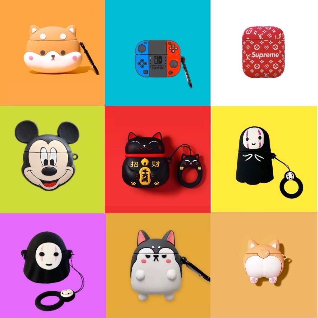 ---------- Chức Năng Của Sản Phẩm Airpods Case ----------- + Vỏ bảo vệ có móc treo nhỏ gọn. + Giúp bạn đựng các dòng tai nghe nhét tai Airpod. + Dùng làm hộp đựng tai nghe bảo vệ tai nghe tốt hơn, giúp bảo vệ tai nghe không bị sứt, xướt, đứt dây khi mang theo người. + Tiện dụng, nhỏ nhắn và nhiều hình thú dễ thương + Thiết kế: Bo khít, bảo vệ 360 độ + Chất liệu: cao su silicon cao cấp đàn hồi tốt, chống va đập + Xuất Xứ: TRUNG QUỐC (HÀNG NHẬP KHẨU NHÀ MÁY).
