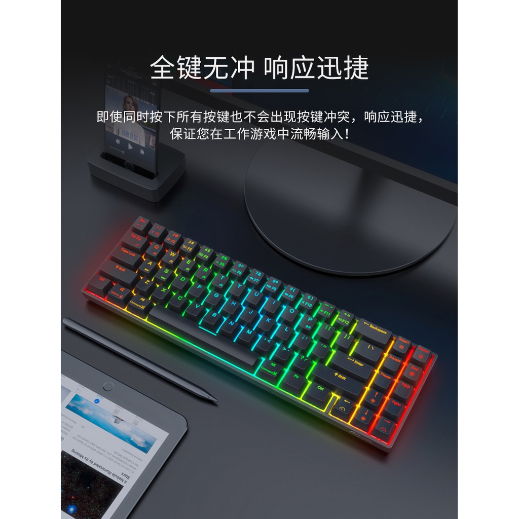 RK71 Bàn phím văn phòng chơi game không dây bluetooth cho Android/Windows/iOS/Mac 🍃🍃🍃 Mô tả sản Phẩm🍃🍃🍃 ✪ Tương thích với Android, Windows, iOS, Mac và các hệ thống thiết bị khác, phù hợp với tất cả các loại điện thoại thông minh và thiết bị máy tính bảng. ✪ Với 18 loại chế độ hiệu ứng đèn led, Led đơn sắc, tốc độ sáng có thể được điều chỉnh. ✪ Phím chức năng hợp chất, một chức năng hai mục đích, chính và nhỏ, để đạt được chức năng đầy đủ của 104 phím. ✪ 3 chế độ bố cục, chuyển đổi các chế độ hoạt động khác nhau chỉ bằng một cú nhấp chuột, thích ứng với các môi trường hoạt động khác nhau. ✪ Bộ nhớ thông minh, không cần thiết lập lại khi tắt nguồn. ✪ Pin Lithium 1000 mAh tích hợp, tiết kiệm năng lượng thông minh, ngủ tự động mà không hoạt động trong một phút ở chế độ Bluetooth. ✪ Thiết kế công thái học. #Lưu ý: Rk71 có 4 phiên bản là Phím đen led đơn sắc màu vàng, Phím trắng led đơn sắc màu xanh và 2 phiên bản RGB đen, trắng. Quý khách vui lòng chọn đúng phân loại khi mua hàng.