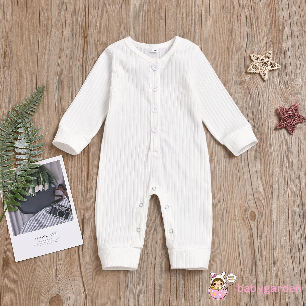 Giới thiệu Áo liền quần tay dài cổ tròn phối nút đáng yêu cho bé 0-24 tháng tuổi