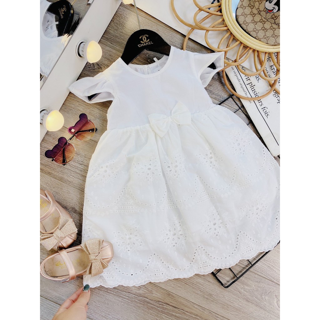 Giới thiệu Váy Bé Gái Gắn Nơ Hoạ Tiết Chân Ren Size [V09-2021] - Babi mama