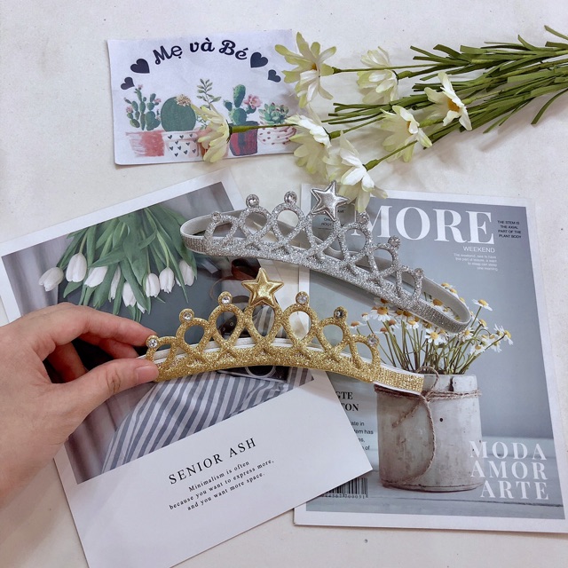 Băng đô vương miện đính đá cho bé gái về số lượng ít đây ạ. Freesize co giãn theo vòng đầu bé.