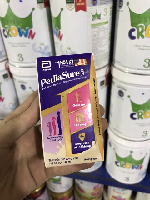 Sữa nước Pediasure Vani 110ml/ hộp Đối tượng sử dụng: PediaSure dành cho trẻ 1-10 tuổi, bao gồm trẻ tăng trưởng kém (nhẹ cân, thấp còi, suy dinh dưỡng, hay ốm), trẻ biếng ăn, trẻ có nhu cầu năng lượng tăng cao..