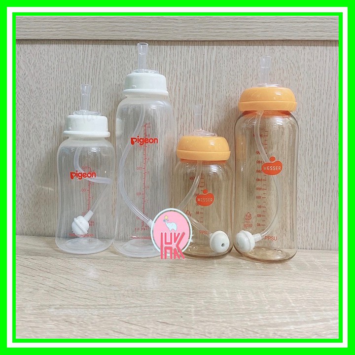Sản phẩm lắp cho các loại bình sữa sau : -Bình sữa Pigeon 60ml,120ml và 240ml -Bình sữa Gb Baby cổ hẹp 120ml -Bình sữa Wesser cổ hẹp PP,PPSU -Bình sữa Dr.Brown cổ hẹp -Các loại bình sữa cổ hẹp khác có cổ rộng 3.5cm