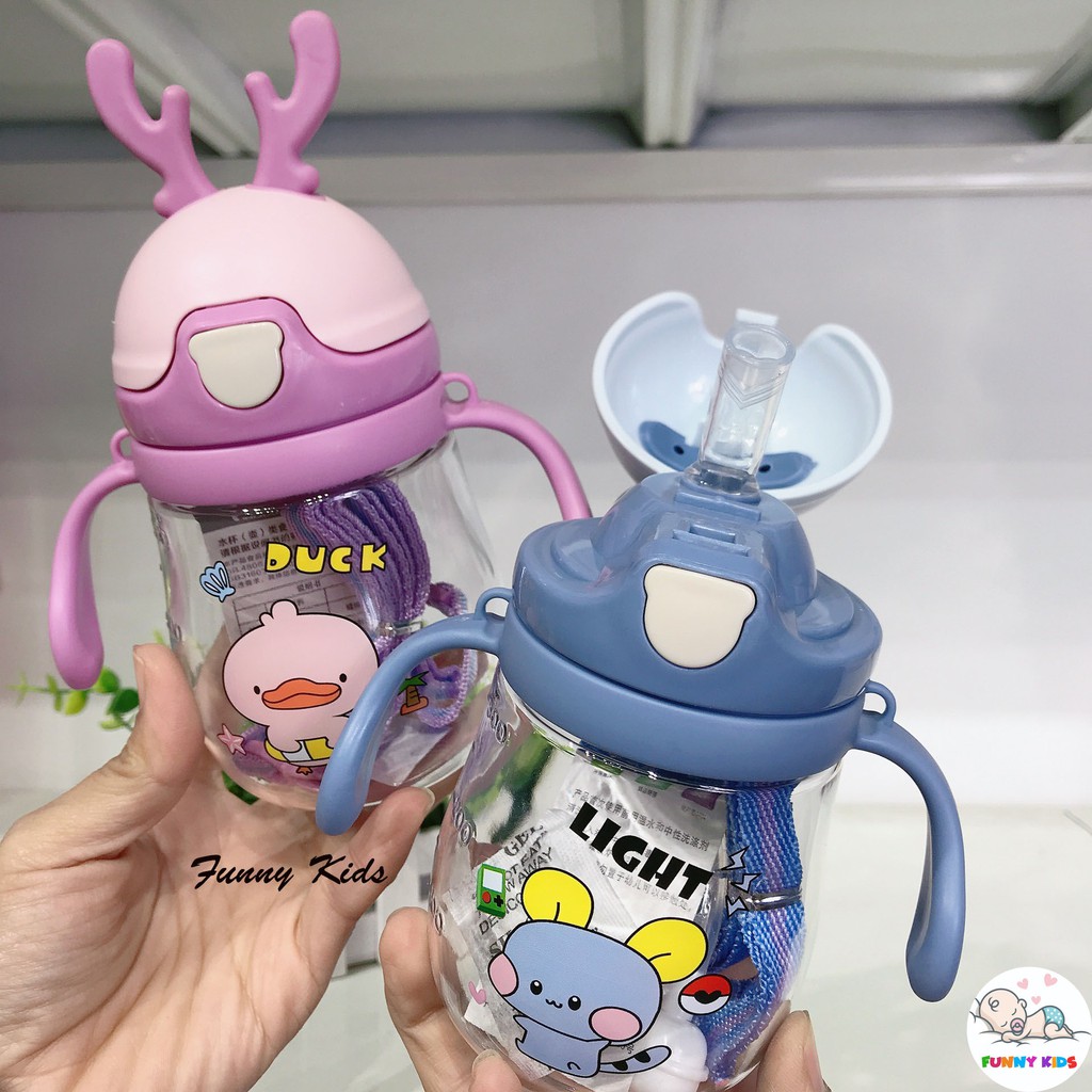 Mẹ & Bé > Đồ dùng cho bé > Bình Sữa & Phụ kiện || [Mã FMCG8 giảm 8% đơn 500K] [Tặng cọ ống hút] Bình uống nước, bình tập uống tai hưu cho bé 350ml, Funny Kids Shop