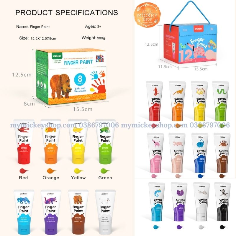 Giới thiệu Màu vẽ bằng tay Hãng Mideer Finger Paint 1 hộp 8 tuýp 60ml an toàn cho bé