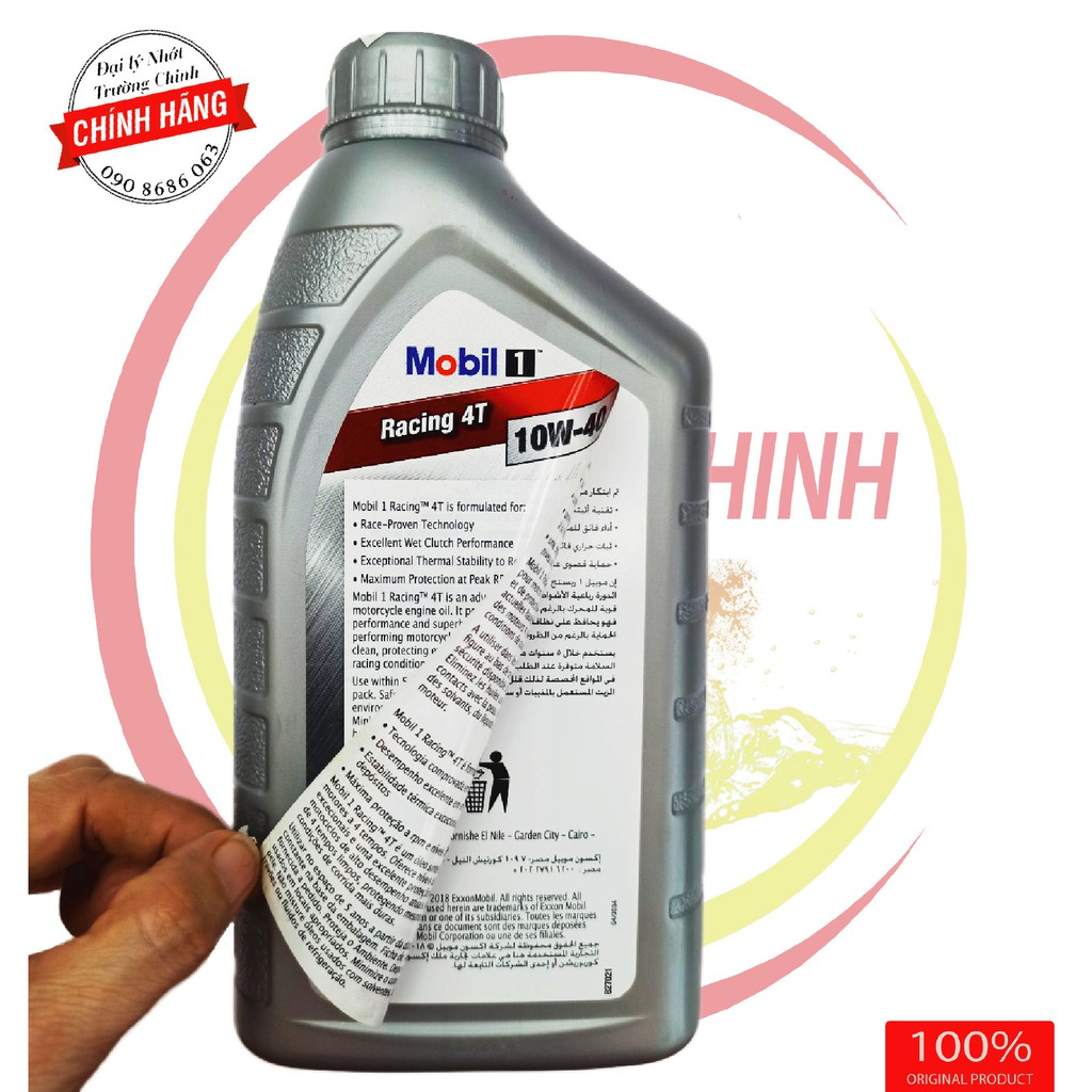 Thông số kỹ thuật của nhớt Mobil 1 Racing 4T 10W40 Nhà sản xuất: Mobil 1 Độ nhớt: 10W40 Dung tích nhớt:1L Dầu nhớt tổng hợp nhập 100% Singapore Tiêu chuẩn: API SM; Jaso T903:2006 MA2
