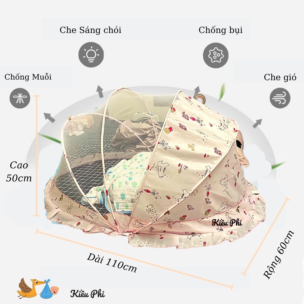 ⭐️ Màn chụp cho bé Kiều Phi thiết kế lưới chống muỗi, côn trùng là loại lưới 3D thoáng khí, giúp không khí bên trong màn thông thoáng khi sử dụng.