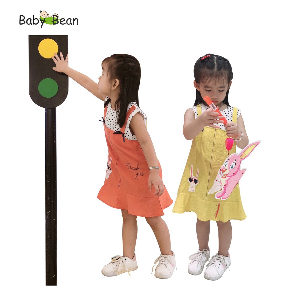 Giới thiệu [MÃ THƯƠNG HIỆU YÊU THÍCH Voucher giảm 10%] Đầm Đũi Yếm Đuôi Cá Thêu Thỏ Phối Chấm Bi Bé Gái BabyBean (8kg-35kg)