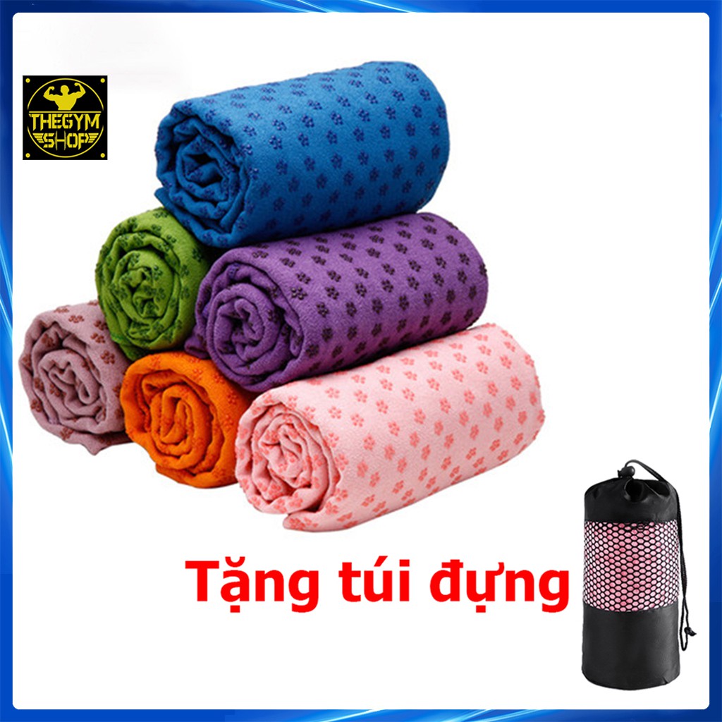 Tặng kèm túi lưới khi mua sản phẩmKhăn trải thảm Yoga hạt chống trượt siêu bền tại The Gym Shop Chi tiết sản phẩm Khăn trải thảm Yoga hạt chống trượt siêu bền: - Chất liệu: 20% Polyamide và 80% Polyester (Polyamide là những sợi siêu mảnh kích thước chỉ bằng 1/20 sợi tơ tằm và 1/100 sợi tóc với những tính năng đặc biệt như thấm hút cực tốt, mềm mại, rất nhẹ, bền và không bị xù hay rơi bụi vải khi sử dụng) - Kích thước: 180 x 63 cm - Trọng lượng: 550g - Màu sắc: xanh dương, xanh rêu, xám, tím đậm, hồng phấn.