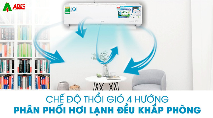 - Thiết kế cánh đảo gió 4 chiều lên - xuống, trái - phải tự động đẩy gió mát tới mọi vị trí trong phòng