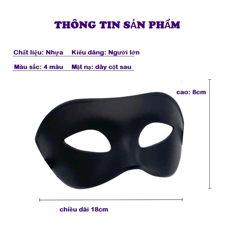 Với chất liệu nhựa bền chắc. C1o nhiều màu cho bạn chọn lựa. Shop có phân loại các bạn tham khảo thêm cũng như chọn được màu phù hợp cho bạn. Có thể sử dụng nhiều lần. Đeo freesize hợp cho tất cả các gương mặt nam. Mặt nạ có thể tạo nên quyến rủ cho các cặp đôi.