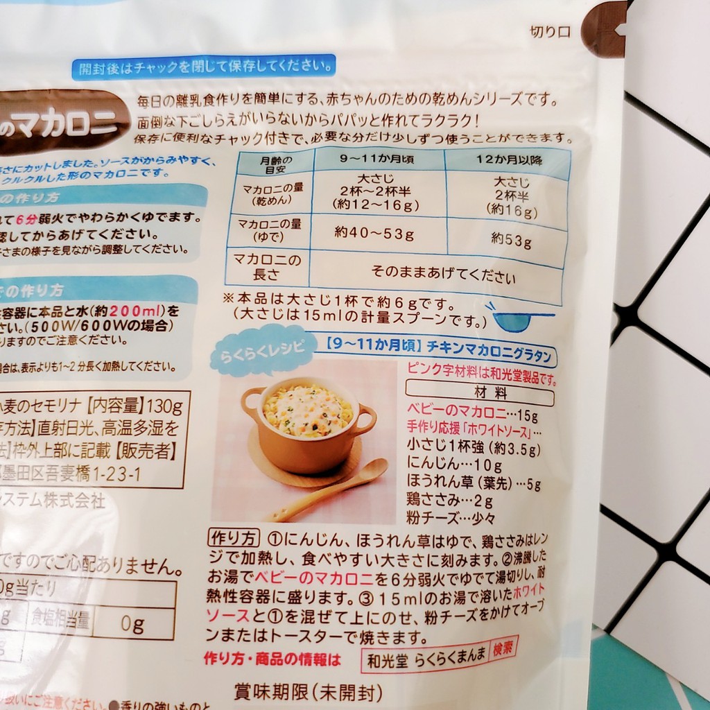 Cách dùng: Luộc nui với nước sôi khoảng 4-5 phút cho nui chín và nấu cùng nước hầm xương hay nước dashi cho thêm rau củ để món ăn thêm hấp dẫn. - Bé từ 9-11 tháng dùng khoảng 12g mỗi lần ăn. - Bé từ 12 tháng dùng khoảng 16g mỗi lần ăn. Nui cho bé Wakodo 9 tháng không sử dụng muối, nên khi luộc nui có thể cho thêm gia vị. Cho thêm nước gia vị mà bé yêu thích vào. Cách sử dụng sản phẩm: - Sau khi cắt túi, kéo dây kéo trên miệng túi, cho tay vào lấy nui trong túi ra. - Cũng có thể nấu bằng lò vi sóng. Cho vào đồ đựng chịu nhiệt (có đường kính 15cm, cao khoảng 7.5 cm), cho nước và sợi mì vào, không bọc lại mà làm nóng trong 2~3 phút (trường hợp 500W). - Thời gian làm nóng phải theo quy định. Lượng nước phải theo quy định. Tùy vào dụng cụ bếp mà điều chỉnh cho phù hợp. Xác nhận độ nóng của sản phẩm rồi cho bé ăn