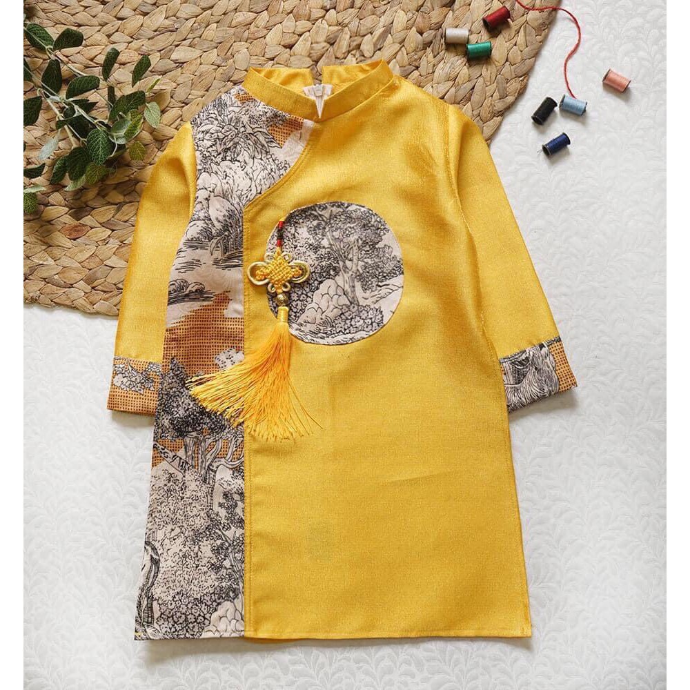 Thời trang trẻ em & trẻ sơ sinh > Quần áo bé trai > Com lê & đồ bộ || [MÀU VÀNG & ĐỎ] Áo Dài Cách Tân Cho Bé Trai Chất Gấm Cao Cấp Mẫu Mới Tết 2021 V205 - Unchi Store