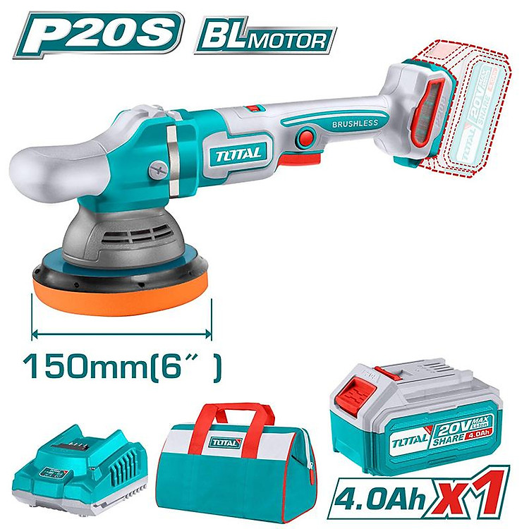 Mô tơ không chổi than Điện áp: 20V Tốc độ không tải: 2000-4500 vòng/phút Đường kính đĩa đánh bóng: 150mm Kiểm soát tốc độ thay đổi Kèm theo: 1 pin 4.0Ah(TFBLI20021) 1 sạc (TFCLI2001) Điện áp sạc: 220-240V~50/60Hz Đóng gói bằng túi vải