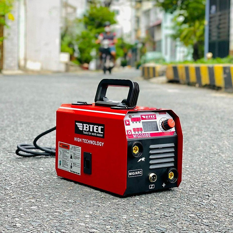 Máy hàn MIG 3 chức năng BTEC MIG250BE là dòng máy đa năng, hàn được cả MIG (có thể hàn không khí dùng dây lõi flux), hàn que (MMA), và có thể có chức năng hàn TIG (tùy cấu hình), máy có màn hình LED, điều khiển dòng hàn và tốc độ ra dây linh hoạt, dùng cuộn dây MIG nhỏ (0.5-1kg), phù hợp gia đình/xưởng nhỏ, tiện lợi với tính năng hàn "không dùng khí". Thông tin tổng quan: Đa năng (3 chức năng): Thường bao gồm MIG (có thể dùng dây hàn lõi thuốc flux không cần khí), hàn que (MMA) và có thể là hàn TIG (với mỏ TIG tùy chọn), cho phép hàn nhiều vật liệu và ứng dụng. Thiết kế: Nhỏ gọn, di động, có màn hình LED hiển thị dòng hàn, dễ dàng điều chỉnh. Công nghệ: Hỗ trợ hàn MIG không cần khí (Flux-Cored), giúp tiết kiệm chi phí và tiện lợi khi không cần bình khí Argon. Điều chỉnh: Kiểm soát dòng hàn (Ampe) và tốc độ ra dây hàn chính xác. Phụ kiện đi kèm: Thường có kẹp mass, súng MIG, và có thể có thêm bộ kẹp hàn que. Ứng dụng: Phù hợp cho công việc gia đình, sửa chữa, xưởng nhỏ hoặc các dự án DIY yêu cầu tính linh hoạt cao. Tính năng nổi bật: Hàn đa vật liệu: Sắt, inox, thép, đồng... (tùy chức năng & vật tư). Tiện lợi khi hàn không khí: Dùng dây hàn lõi thuốc (flux-cored wire) để hàn MIG không cần khí bảo vệ, rất tiện lợi. Dễ sử dụng: Giao diện đơn giản, màn hình LED hỗ trợ người dùng mới. Tóm lại: BTEC MIG250BE là một máy hàn đa năng, linh hoạt, kết hợp nhiều phương pháp hàn trong một thiết bị nhỏ gọn, rất phổ biến cho người dùng cá nhân và thợ hàn chuyên nghiệp