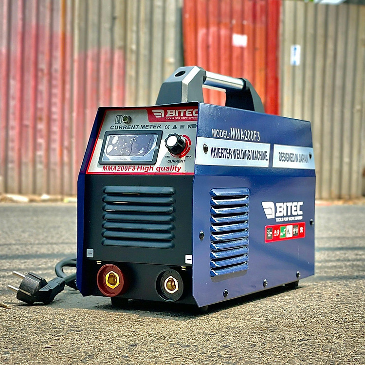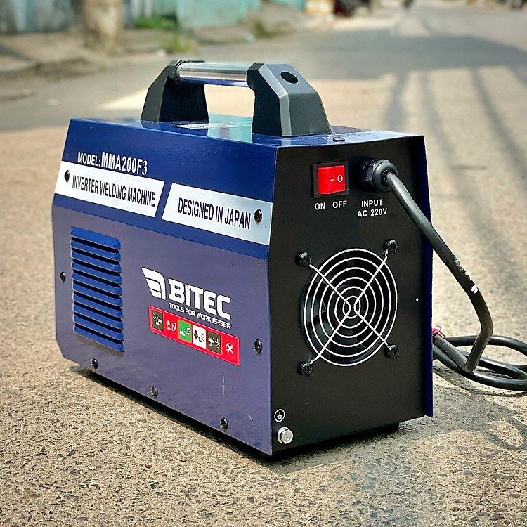 Máy hàn điện tử BITEC MMA250F3 là dòng máy hàn que 1 pha (220V) công nghệ Inverter tiết kiệm điện, cải tiến từ mẫu MMA-200, nổi bật với khả năng hàn que 3.2mm, hồ quang dễ mồi, dòng điện ổn định, cho mối hàn đẹp, trọng lượng nhẹ (khoảng 7.8kg), thiết kế đẹp mắt, phù hợp dùng trong gia đình, xưởng nhỏ, với phụ kiện đi kèm cơ bản như kềm hàn, kẹp max, mặt nạ và búa gõ xỉ. Thông tin chi tiết: Model: MMA250F3. Công nghệ: Inverter. Điện áp vào: 1 pha 220V. Dòng điện ra: 20 - 200A. Điện áp ra: DC 65V (khi không tải). Khả năng hàn: Que hàn Ø 3.2mm. Ưu điểm: Công nghệ tần số cao, hiệu suất cao, tiết kiệm điện. Hồ quang dễ mồi, dòng điện ổn định. Trọng lượng nhẹ (7.8kg), dễ di chuyển. Mối hàn đẹp, chất lượng cao. Phụ kiện đi kèm: Kềm hàn 5m, Kẹp max 3m, Mặt nạ hàn, Búa gõ xỉ. Ứng dụng: Thích hợp cho công việc sửa chữa, lắp ráp kim loại nhỏ lẻ trong gia đình, xưởng cơ khí nhỏ.