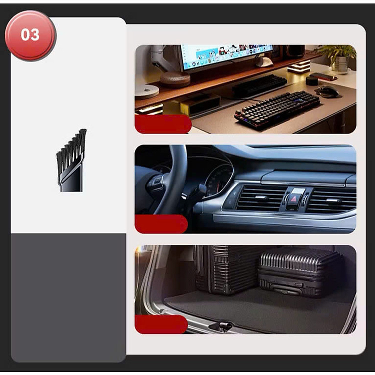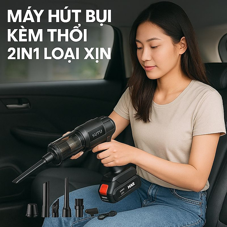 - Dọn dẹp xe hơi: Hút sạch bụi bẩn trong các khe kẽ ghế ngồi, cốp xe.
