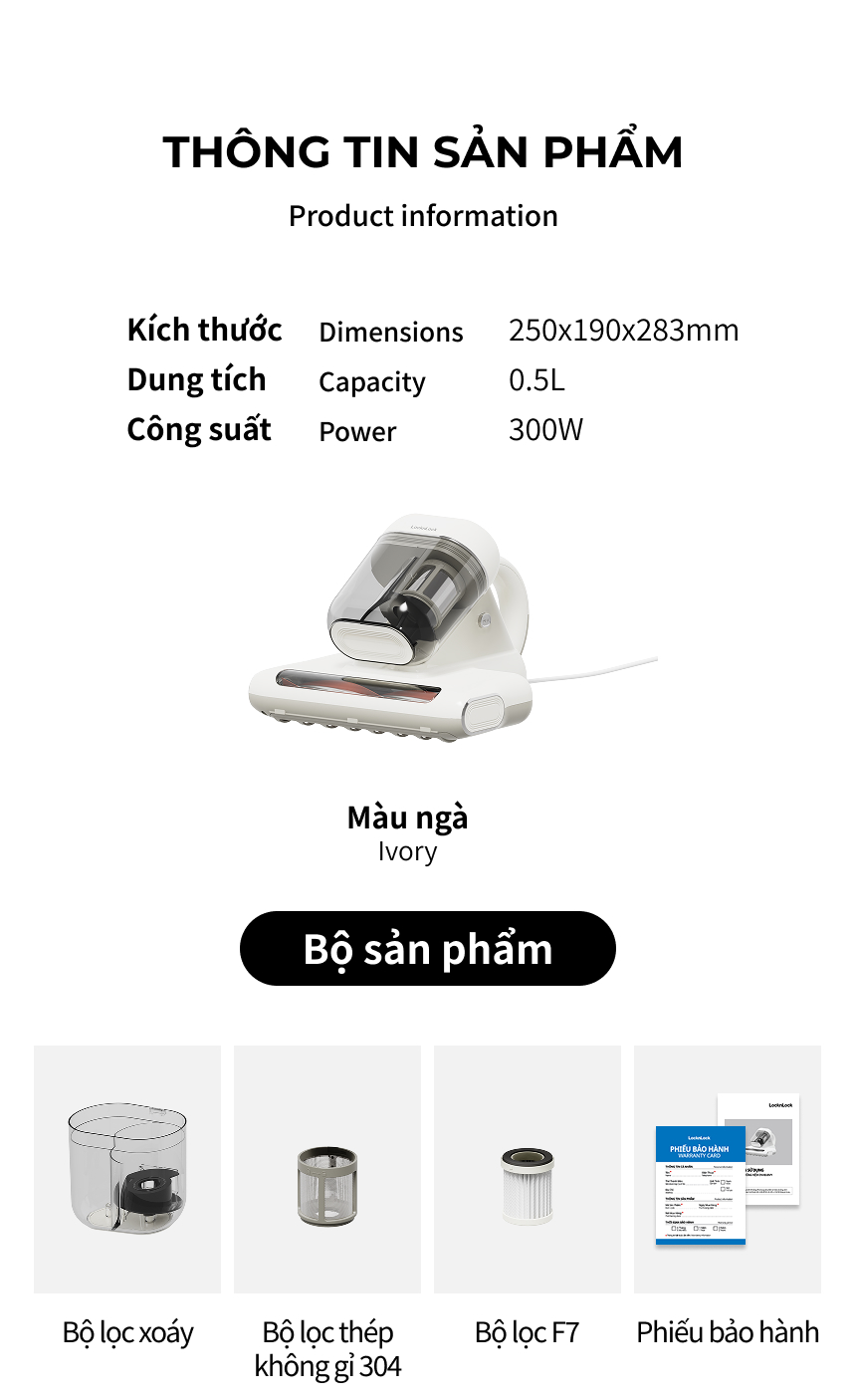 Máy Hút Bụi Giường Nệm LocknLock ENV818IVY, Hàng Chính Hãng, Khử Trùng Bằng Tia UV - JoyMall