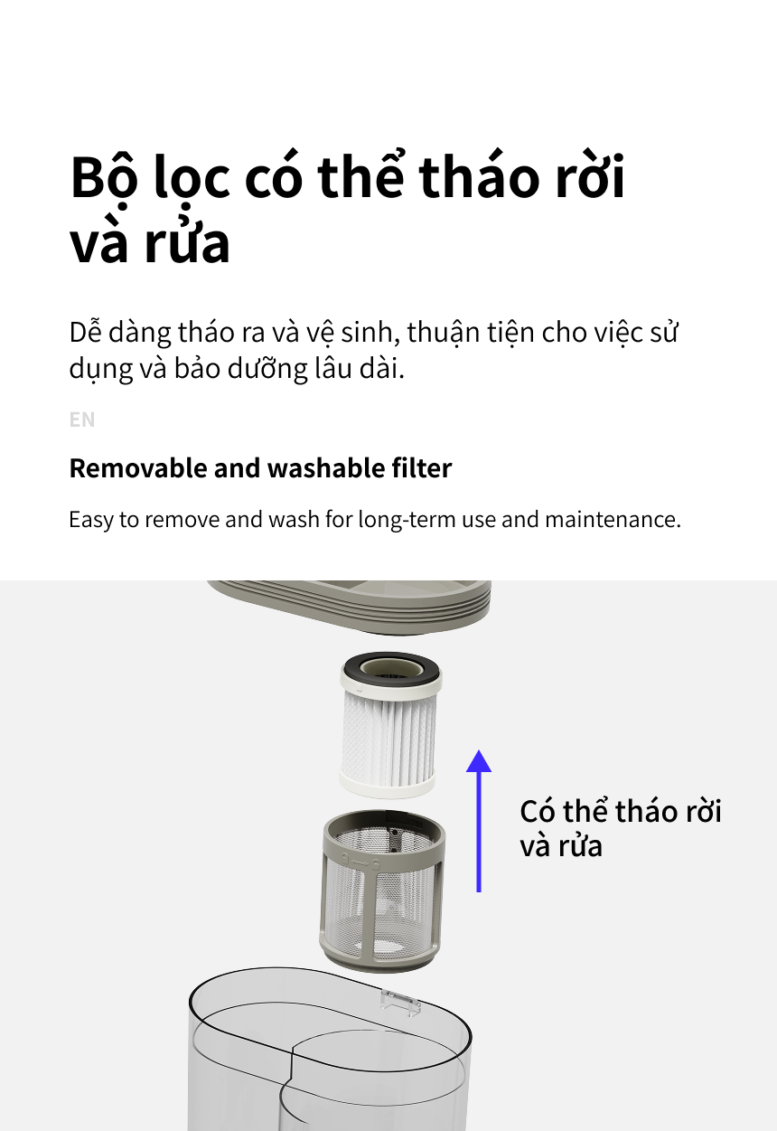 BỘ LỌC CÓ THỂ THÁO RỜI VÀ RỬA: Dễ dàng tháo ra và vệ sinh, thuận tiện cho việc sử dụng và bảo dưỡng lâu dài.