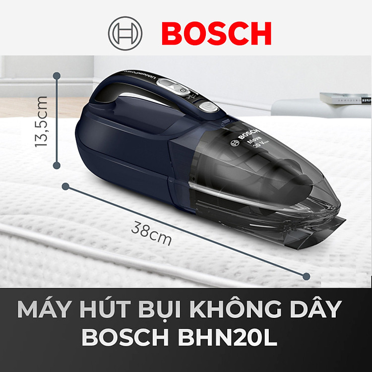 Máy hút bụi cầm tay BHN20L có kích thước là 135x110x380 mm
